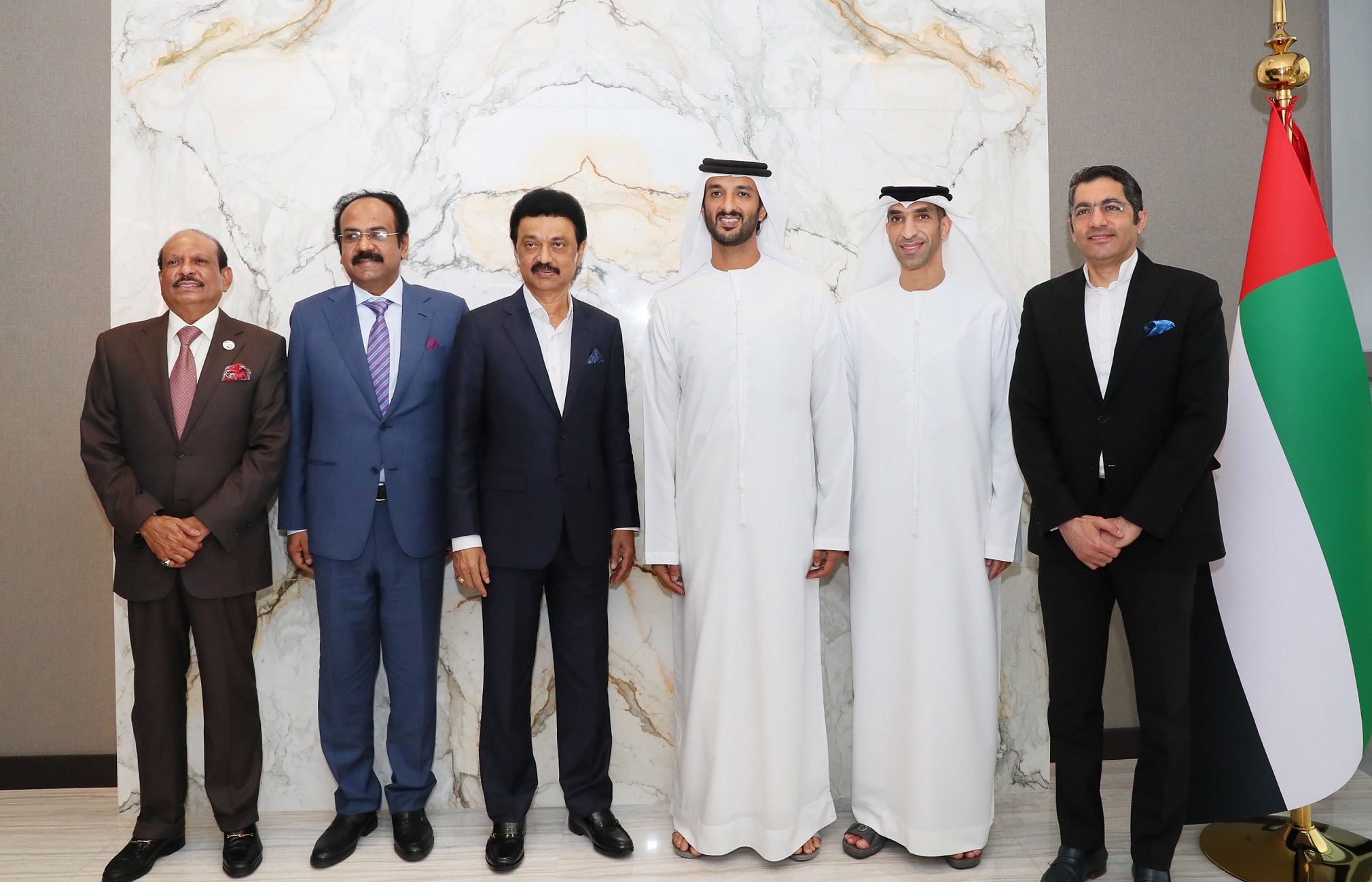 جاء ذلك خلال لقاء معالي عبد الله بن طوق المري وزير الاقتصاد، مع معالي "إم. كي. ستالين" رئيس وزراء ولاية تاميل نادو الهندية، بحضور معالي الدكتور ثاني بن أحمد الزيودي وزير دولة للتجارة الخارجية. وناقش الجانبان خلال اللقاء جهود التعاون المشترك والفرص الاقتصادية والتجارية أمام مجتمعي الأعمال والقطاعات ذات الأولوية التي تخدم الأجندة التنموية للجانبين.