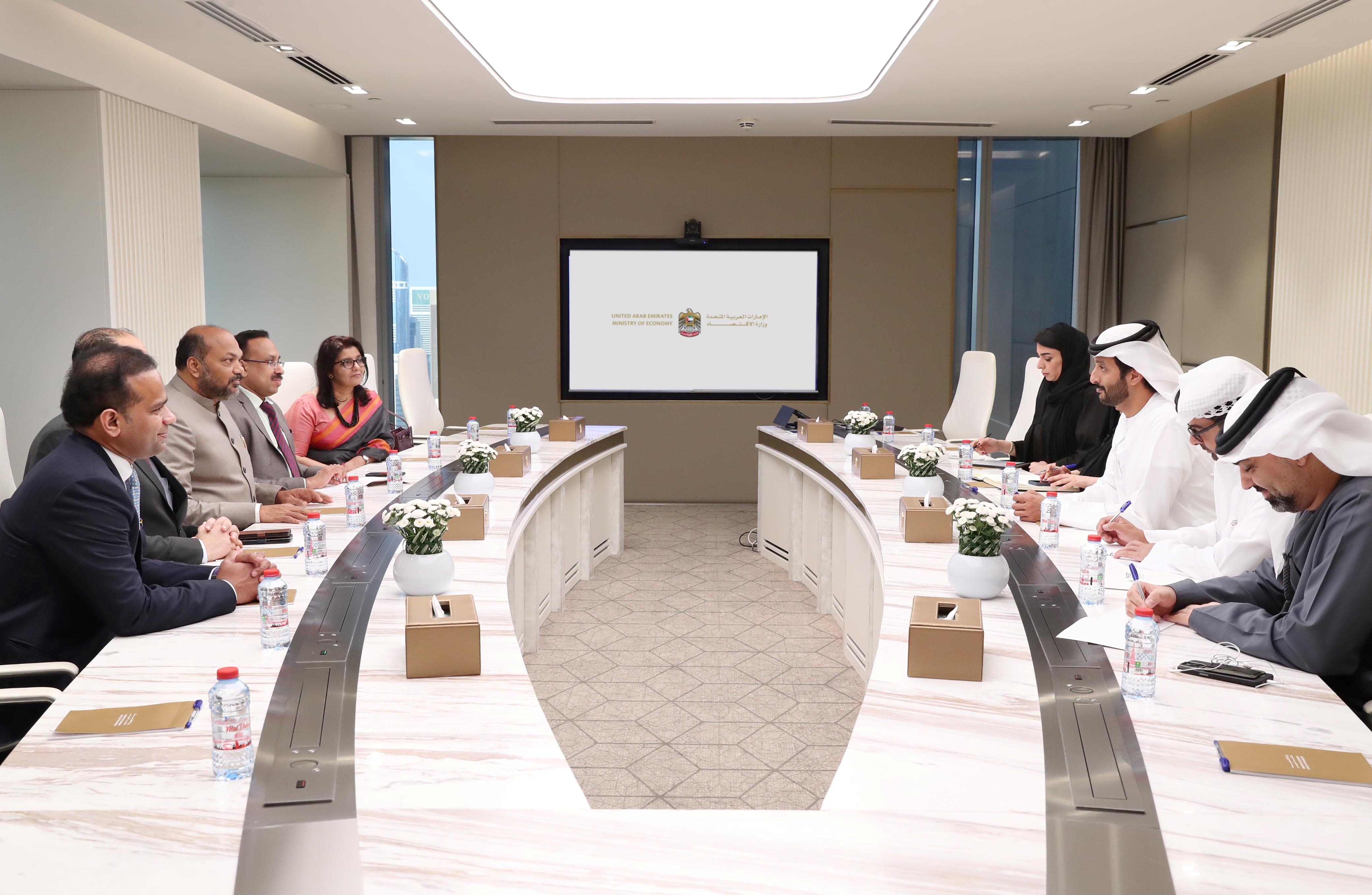 In this regard, H.E. Bin Touq apprised the Indian delegation of the latest developments in the UAE's economic landscape, including policies, initiatives, and measures implemented to enhance the business environment’s competitiveness. He highlighted the country’s efforts to enhance economic openness to the world, establish economic partnerships with strategic markets at regional and global levels, and bolster the flexibility of its economic legislative framework - all of which have cemented the UAE’s position as a global economic hub.