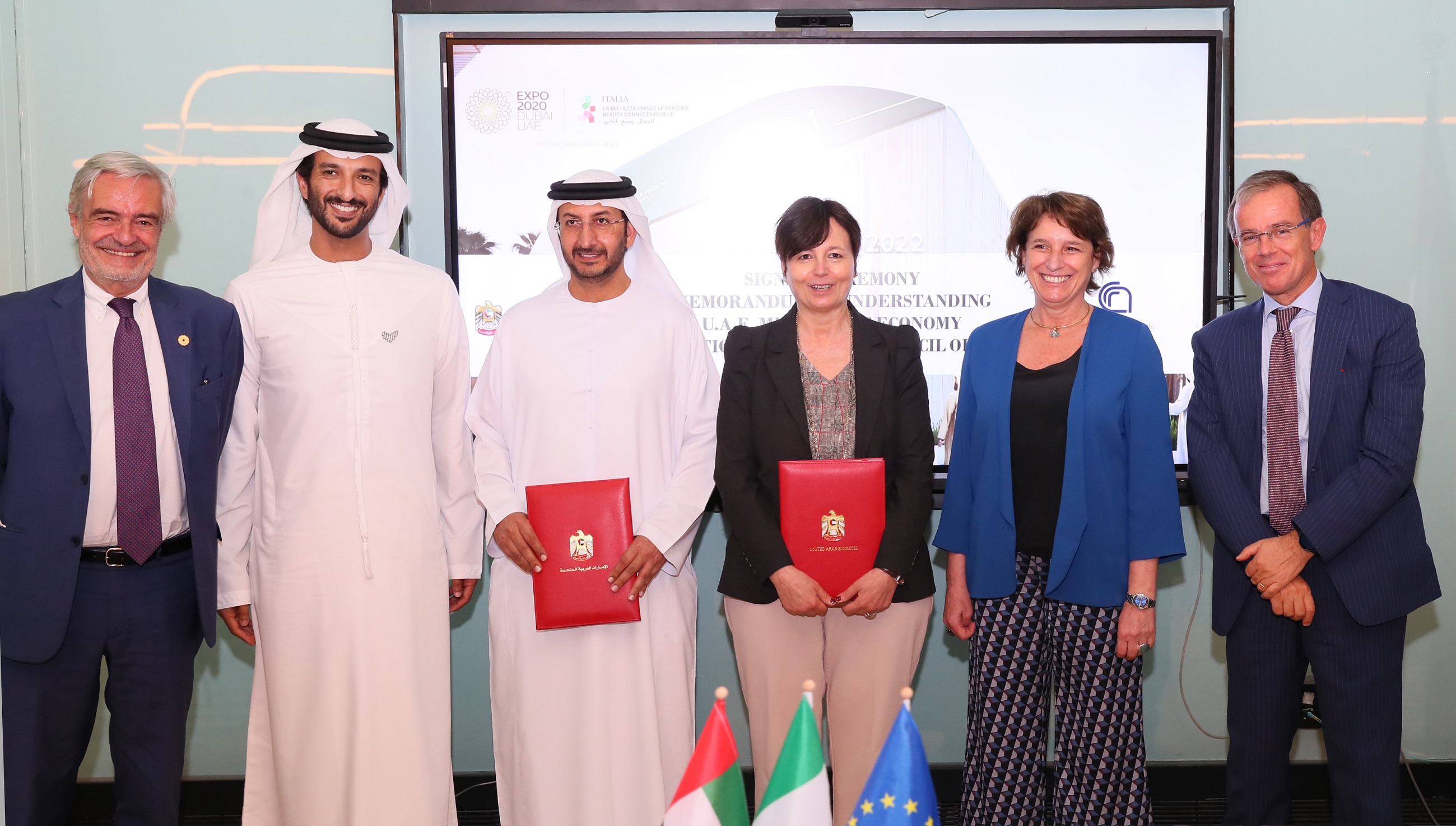 Commenting on the partnership, H.E. Bin Touq said: “The UAE-Italian relations are established on firm foundations of friendship and cooperation in various fields and the two countries share many future visions. These are reflected in the many partnerships between the two sides in the areas of the new economy such as innovation, entrepreneurship, circular economy and its digital applications, technology, and advanced industries. Today, we are taking another new step forward through this MoU, which aims to enhance the contribution of scientific research and modern science to sustainable economic development efforts based on knowledge, innovation, and technology.”
