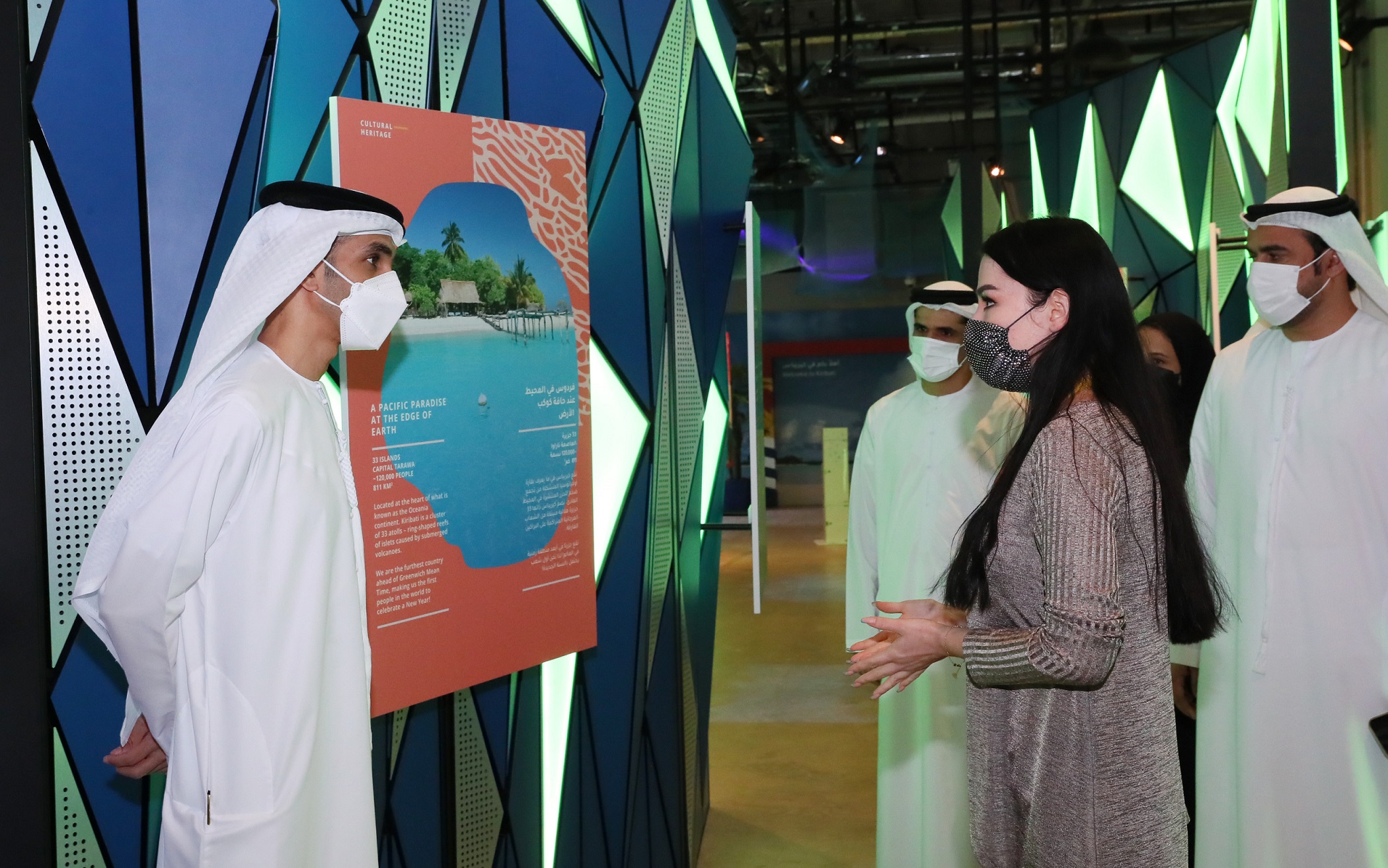 H.E. Dr. Thani bin Ahmed Al Zeyoudi, Minister of State for Foreign Trade, visited the Kiribati Pavilion at Expo 2020 Dubai, located in the Mobility District under the theme ‘Leaping forward, creating opportunities for prosperity.’